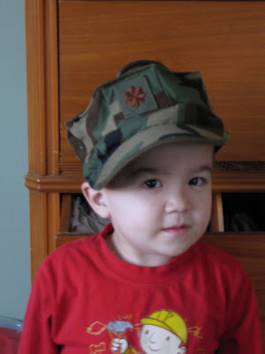 How about this one? Taku found my cammie cover, put it on and declared that he was "going to work". My only question is, "When can we expect your paycheck to post?"